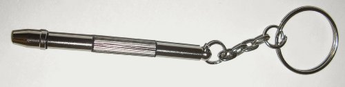 Eyeglass Repair Tool Keychain. This a new eyeglass repair keychain. The ends unscrew to reveal a slotted screwdriver on one end and a Phillips screwdriver on the other end. It measures approximately 2 5/16" x 1/4" (58 x 6 mm) with the ends on and 1 11/16" x 1/4" (43 x 6 mm) with the ends removed. We work hard to update our descriptions and pictures of our merchandise. As part of a process of ongoing innovation by our suppliers, newer versions of the item shown may be shipped before we are able to complete an update. As a result there may be a slight variation in color and design.